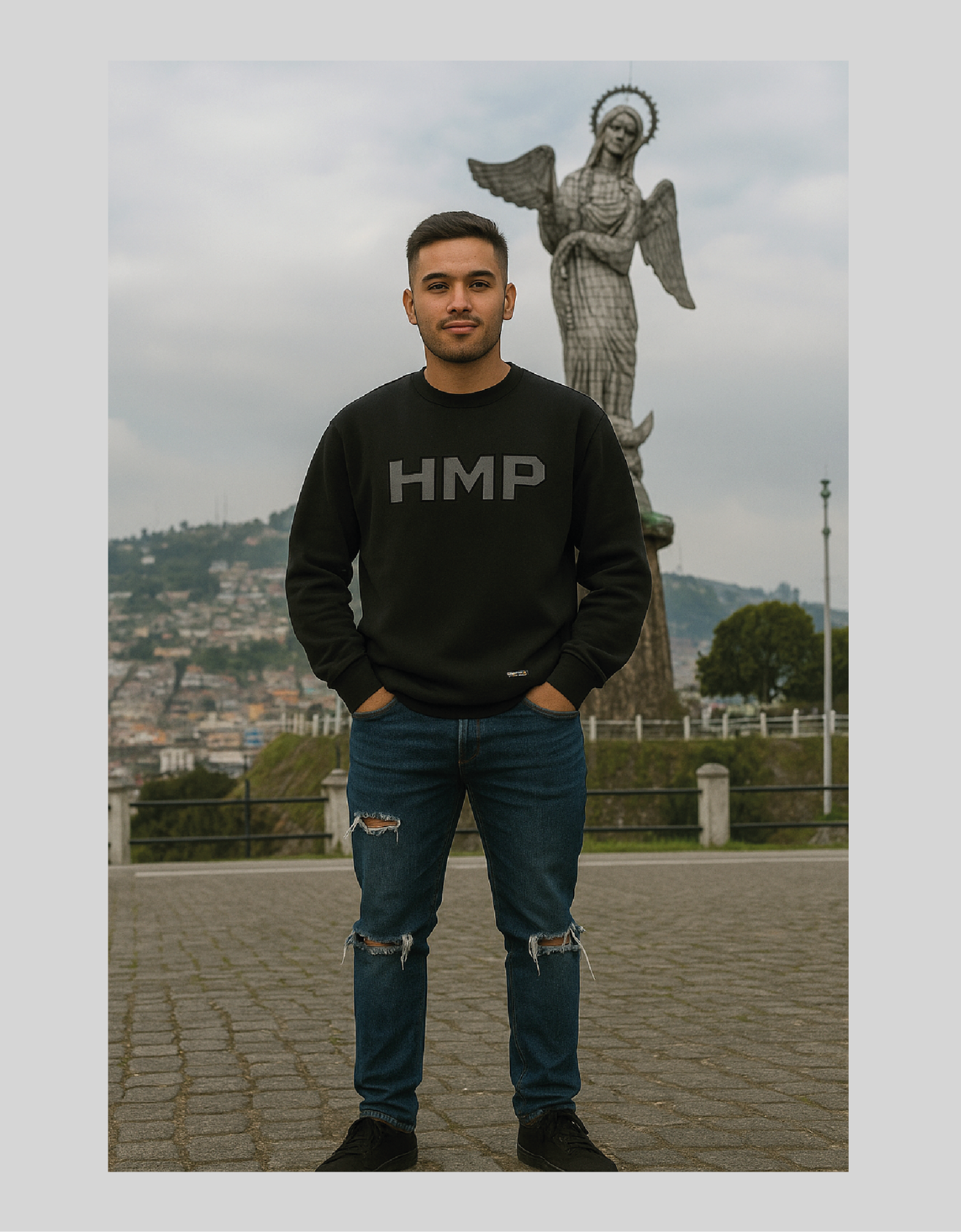 Buzo color gris con logo bordado alto relieve marca original en flex.