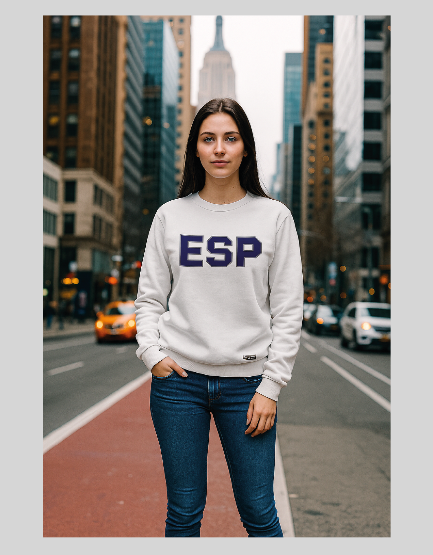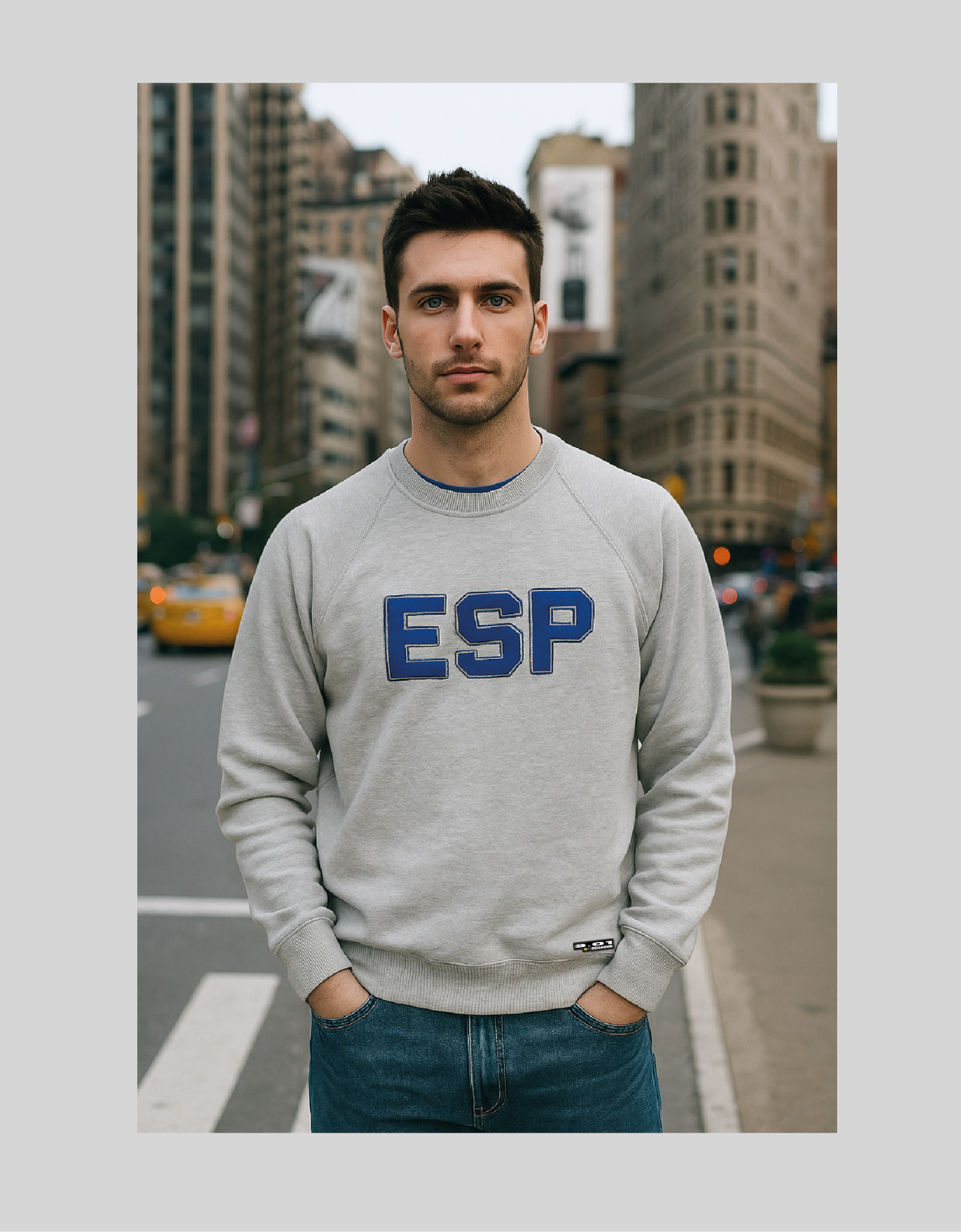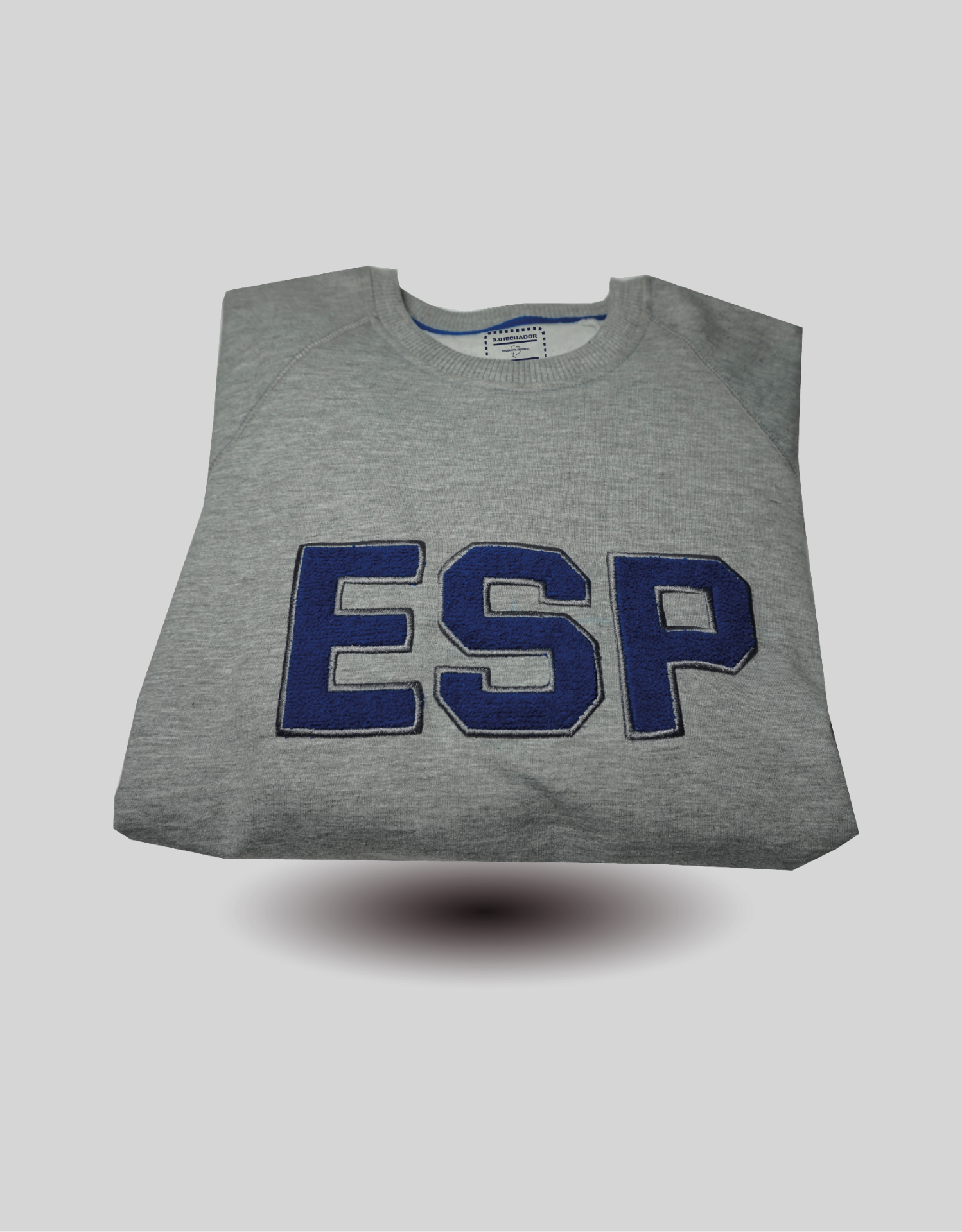 Buzo color gris con logo bordado alto relieve marca original en flex.